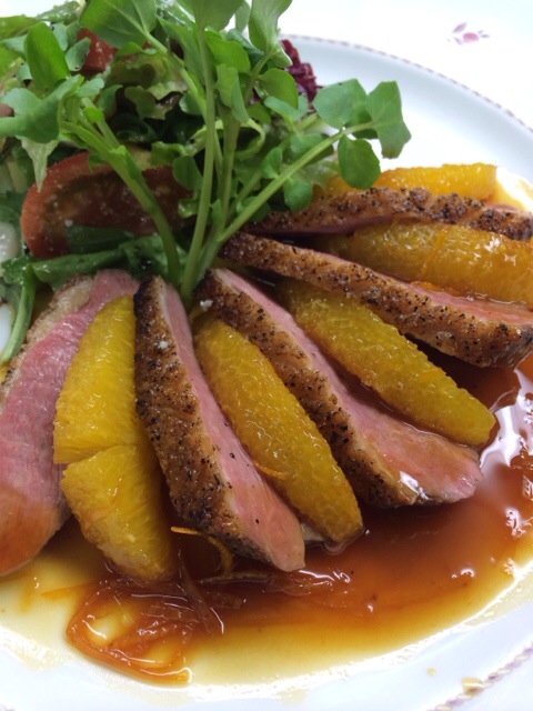シャラン鴨のローストをオレンジの酸味と甘味で・・・