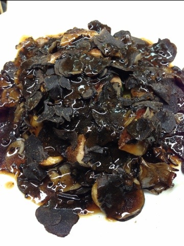 アラカルトの「フォアグラソテー」にお客様のリクエストで黒トリュフをどっさり掛け。